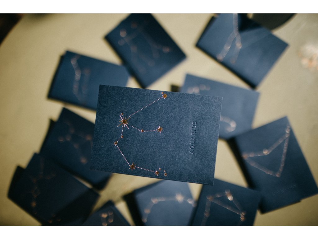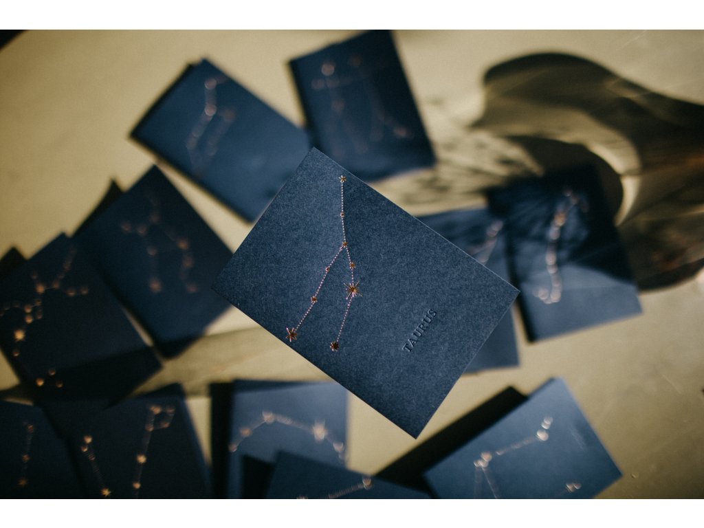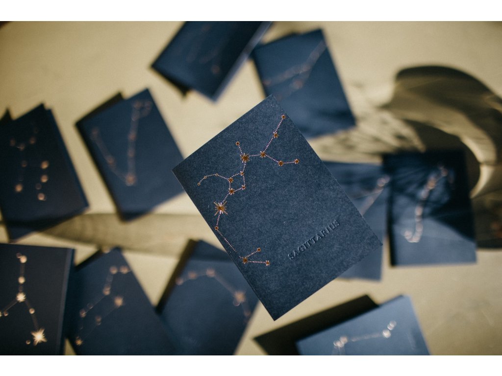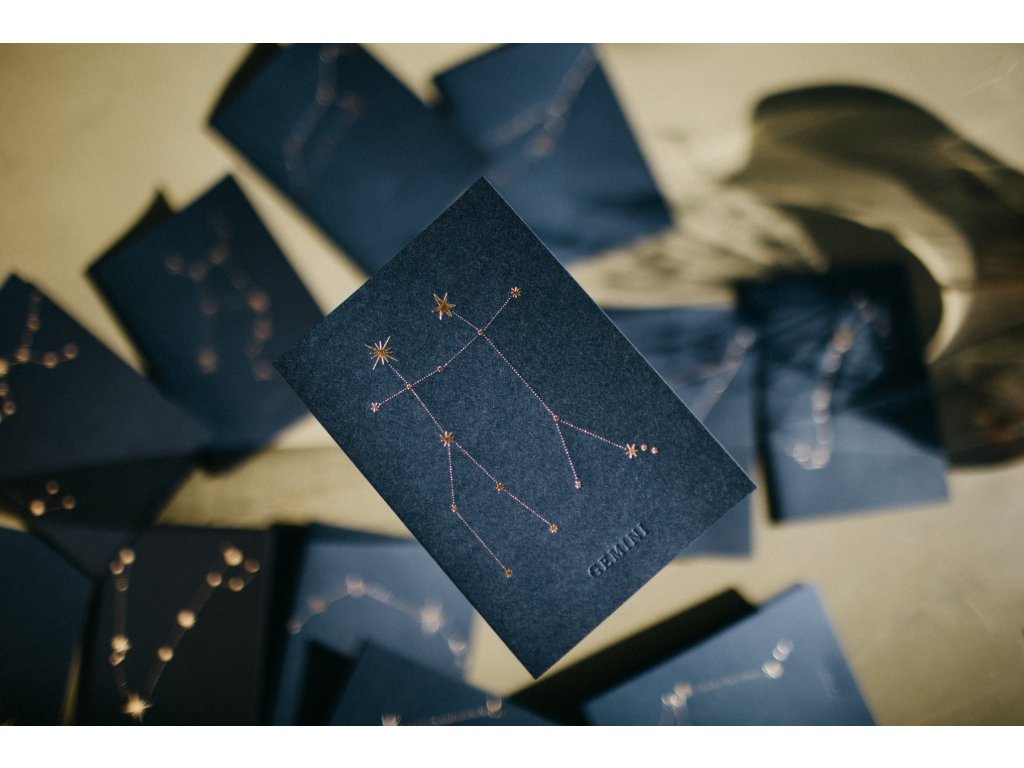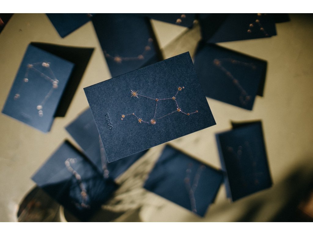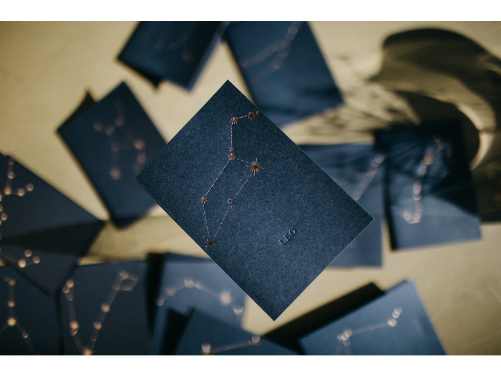 - pod souhvězdím, je decentně vyražen latinský název souhvězdí např. Leo, Virgo, Gemini