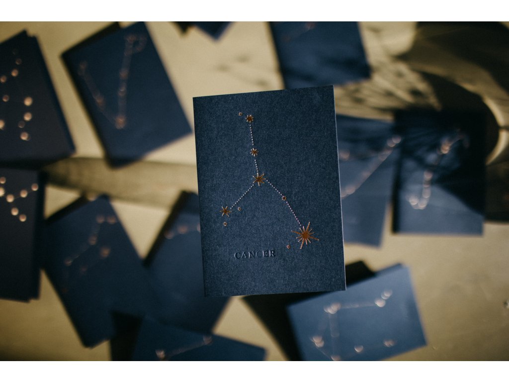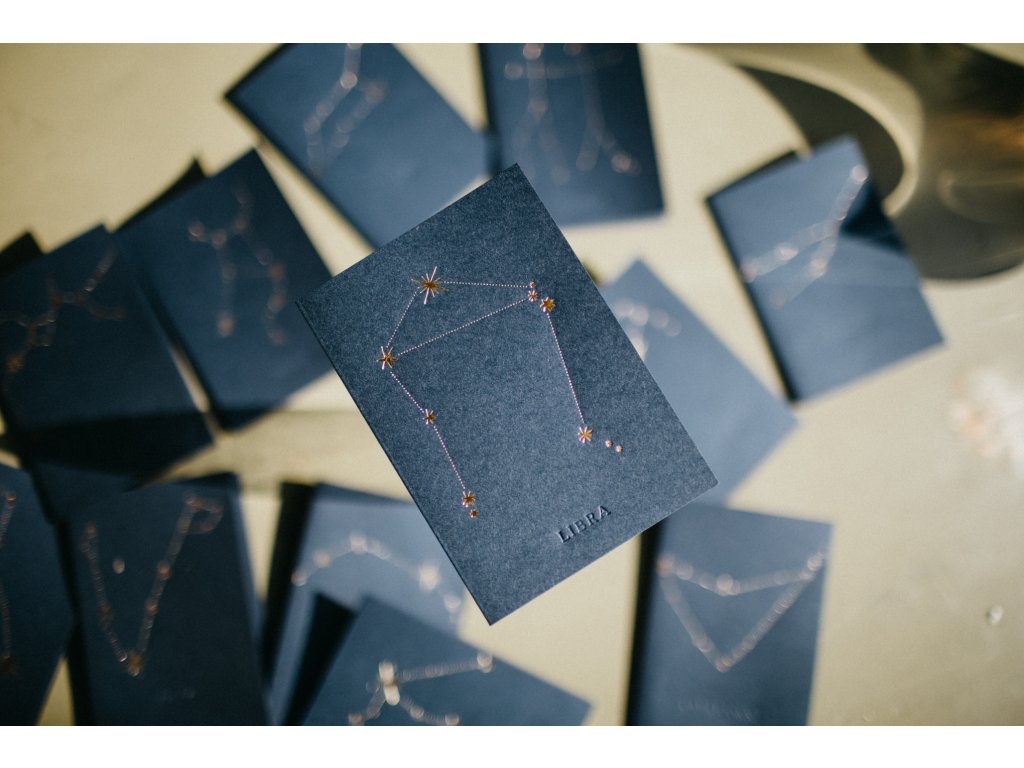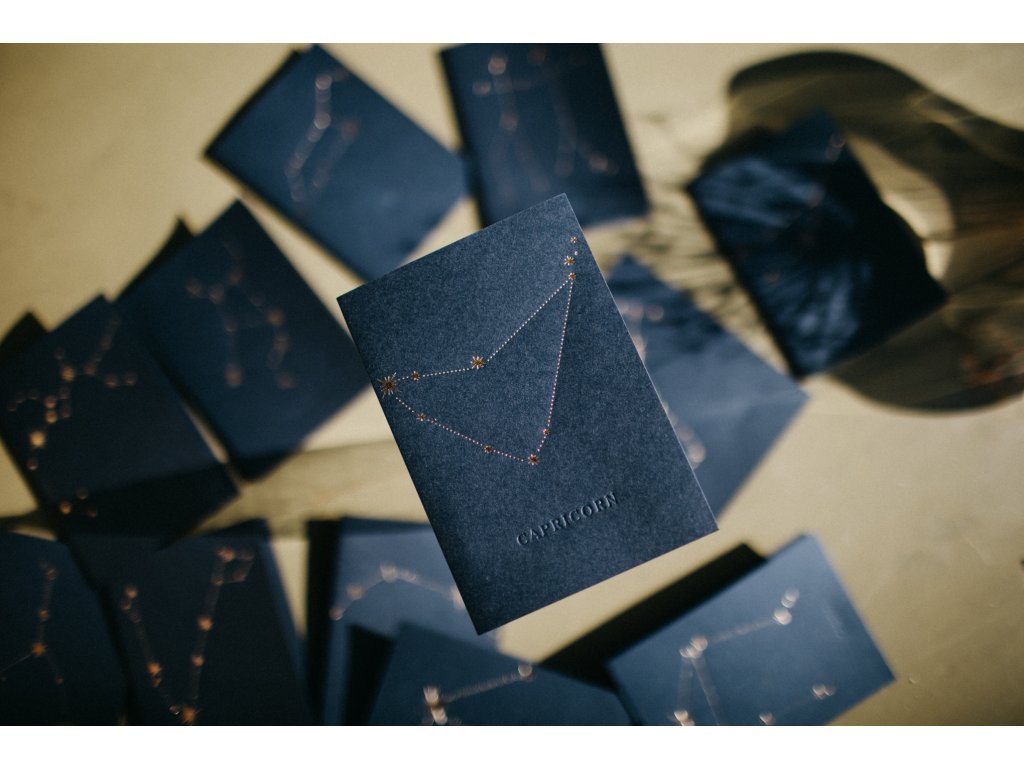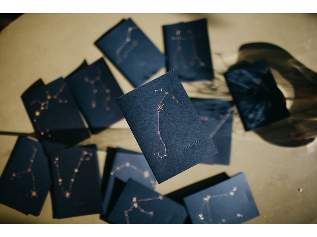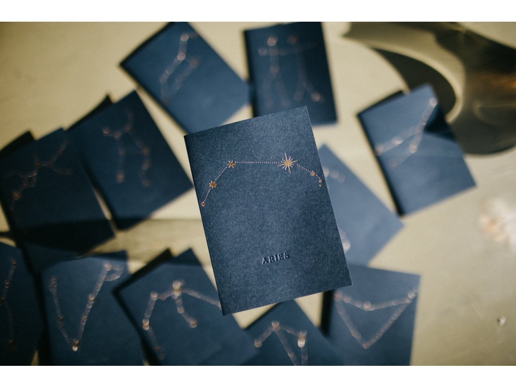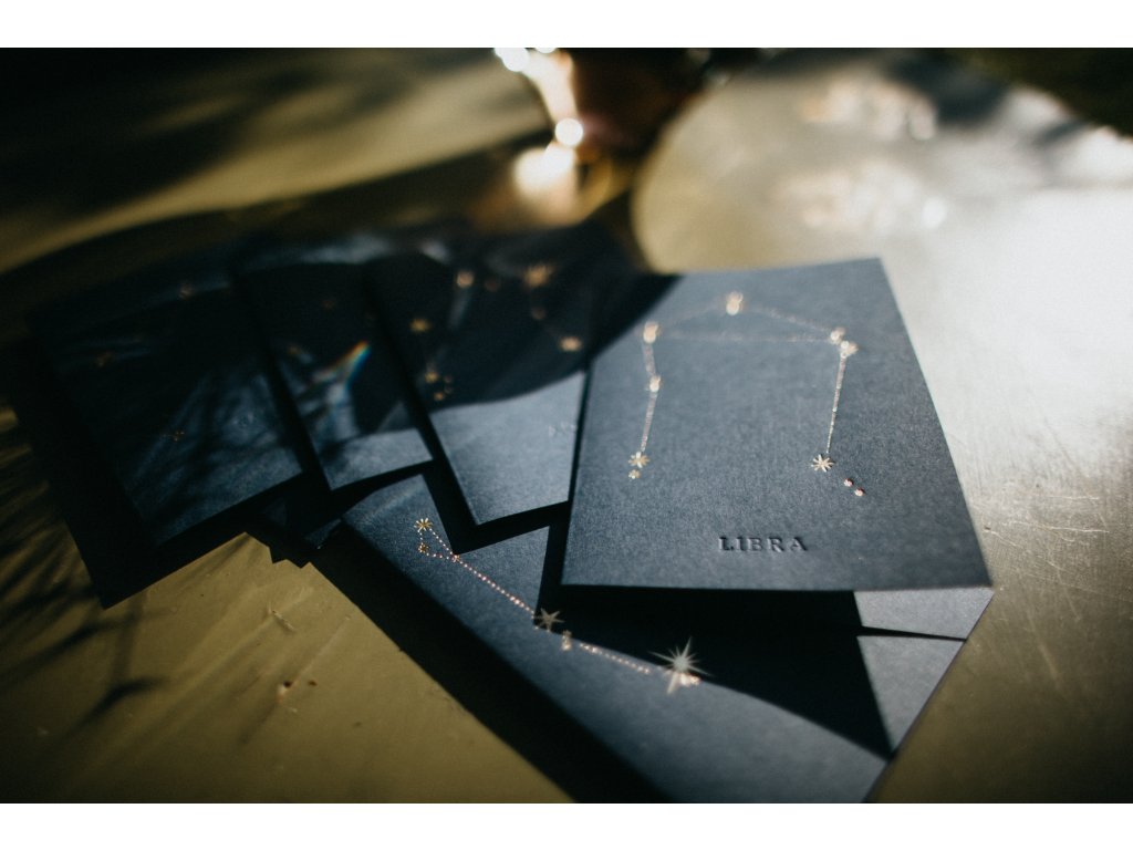 - pod souhvězdím, je decentně vyražen latinský název souhvězdí např. Leo, Virgo, Gemini