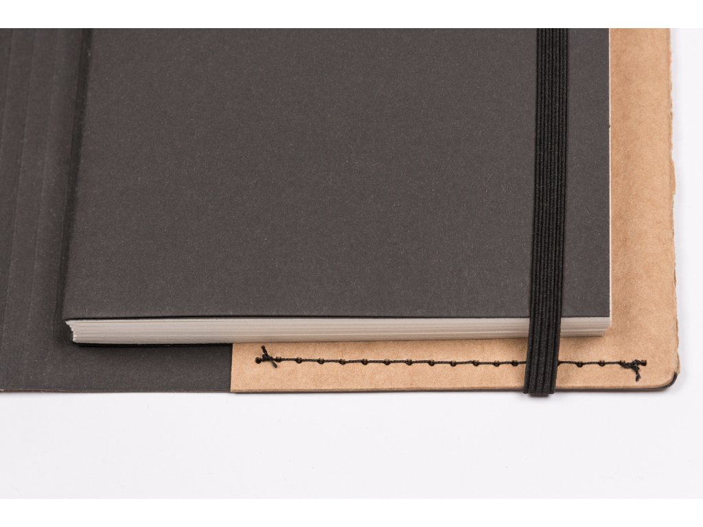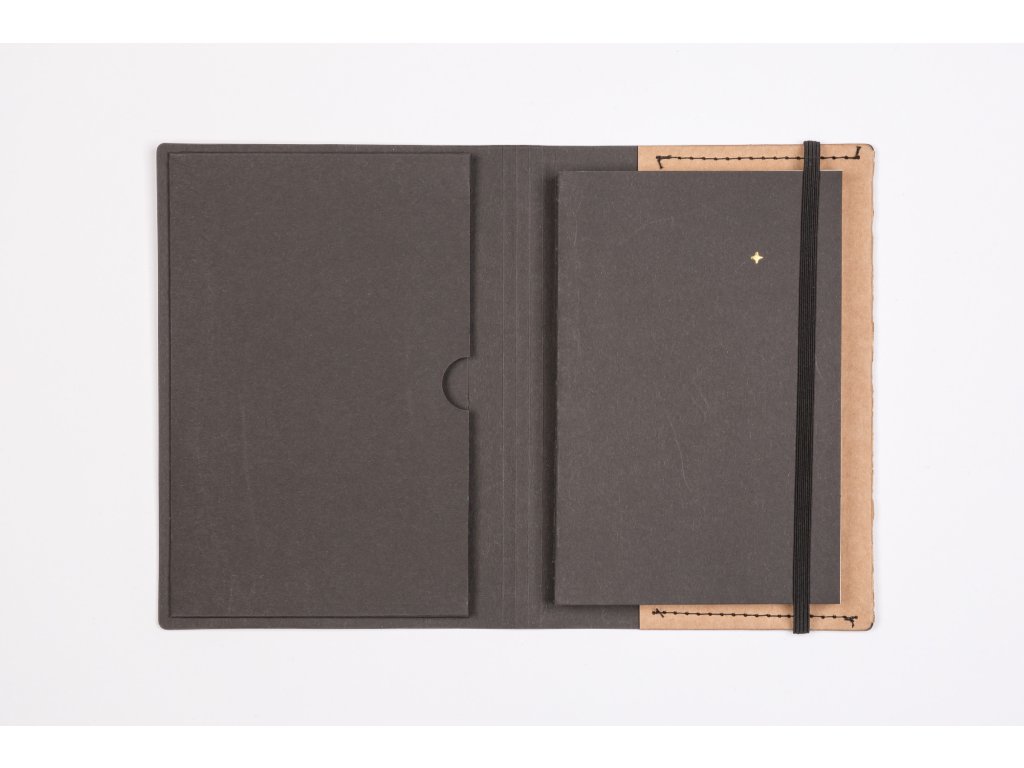 Zápisník, který je chráněn deskami s gumičkou. Ideální na zapisování těch nejtajnějších přání a ukládaní nezbytností do papírové kapsy uvnitř.