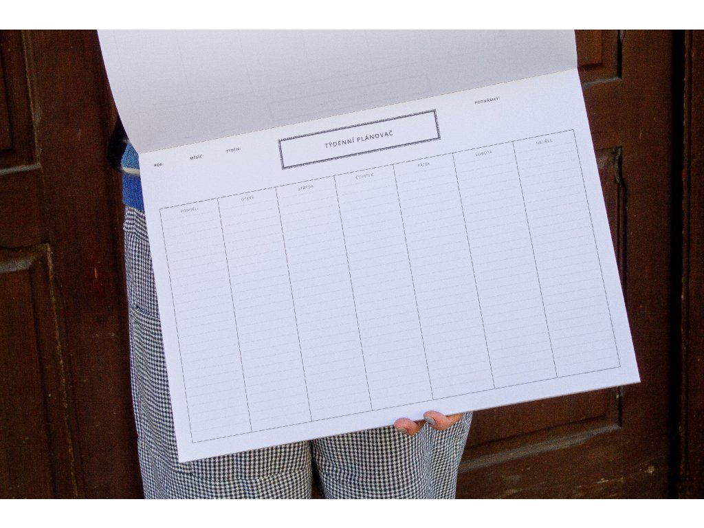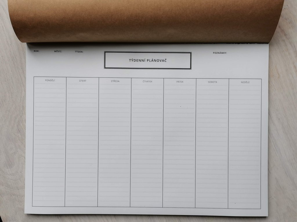 • vnitřní stránky: týdenní nedatované rozvržení na stránce